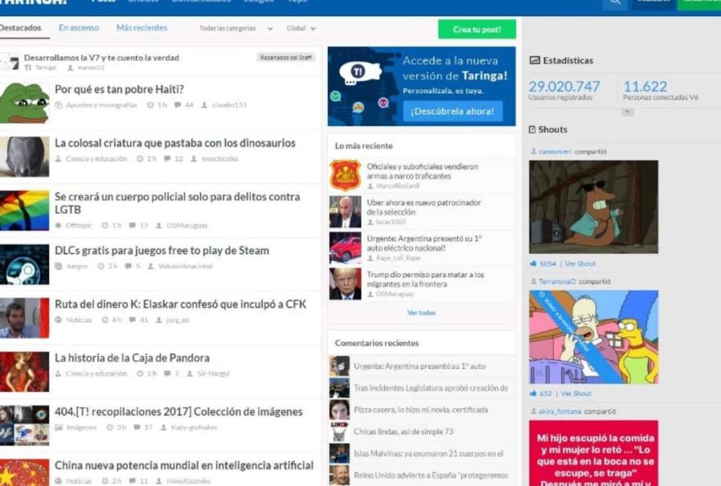 Con más de 30 millones de usuarios registrados y más de 1,000 comunidades activas, Taringa! se destacó por ser un espacio donde las personas podían explorar y compartir sus intereses en una amplia variedad de temas.