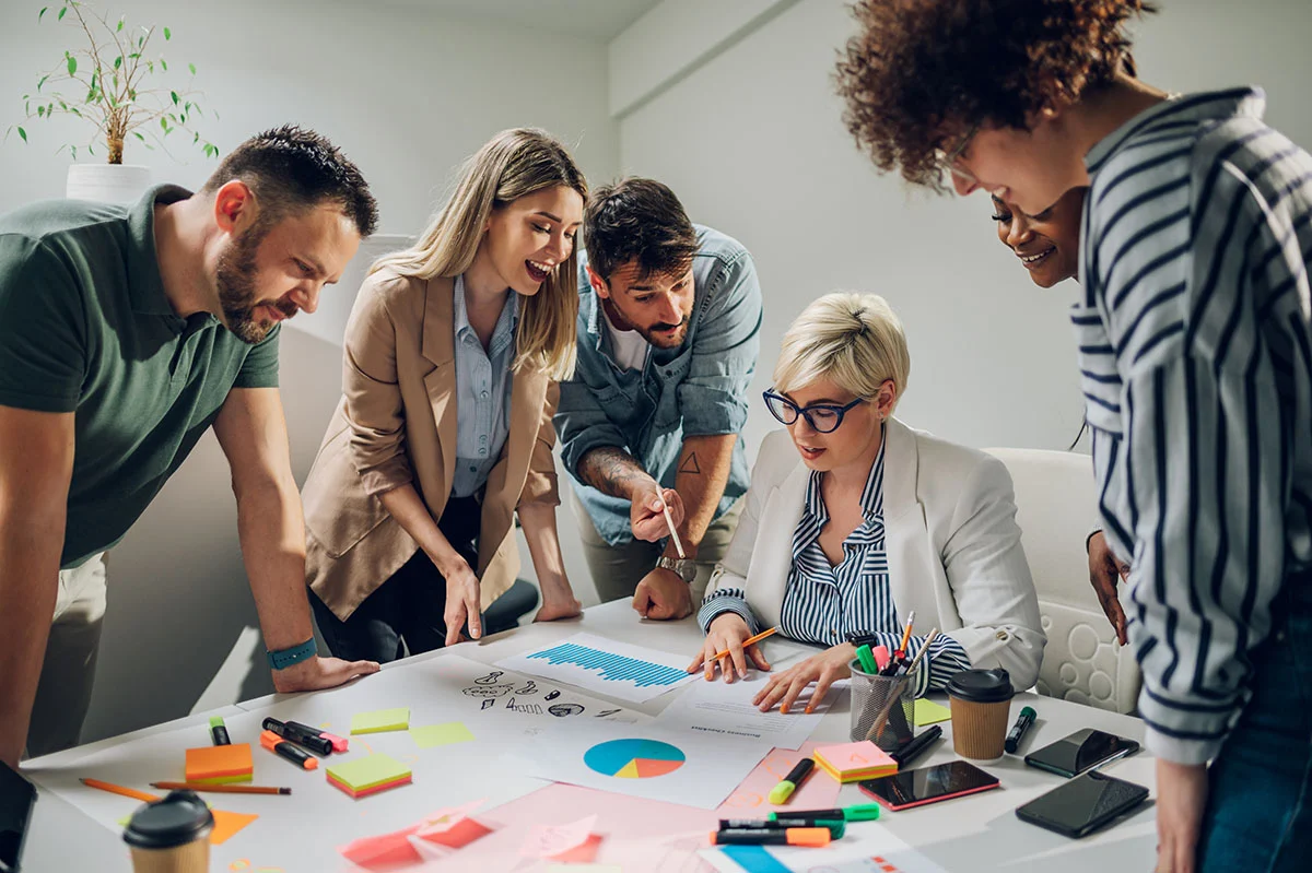Equipo creativo colaborando dentro de una empresa innovadora