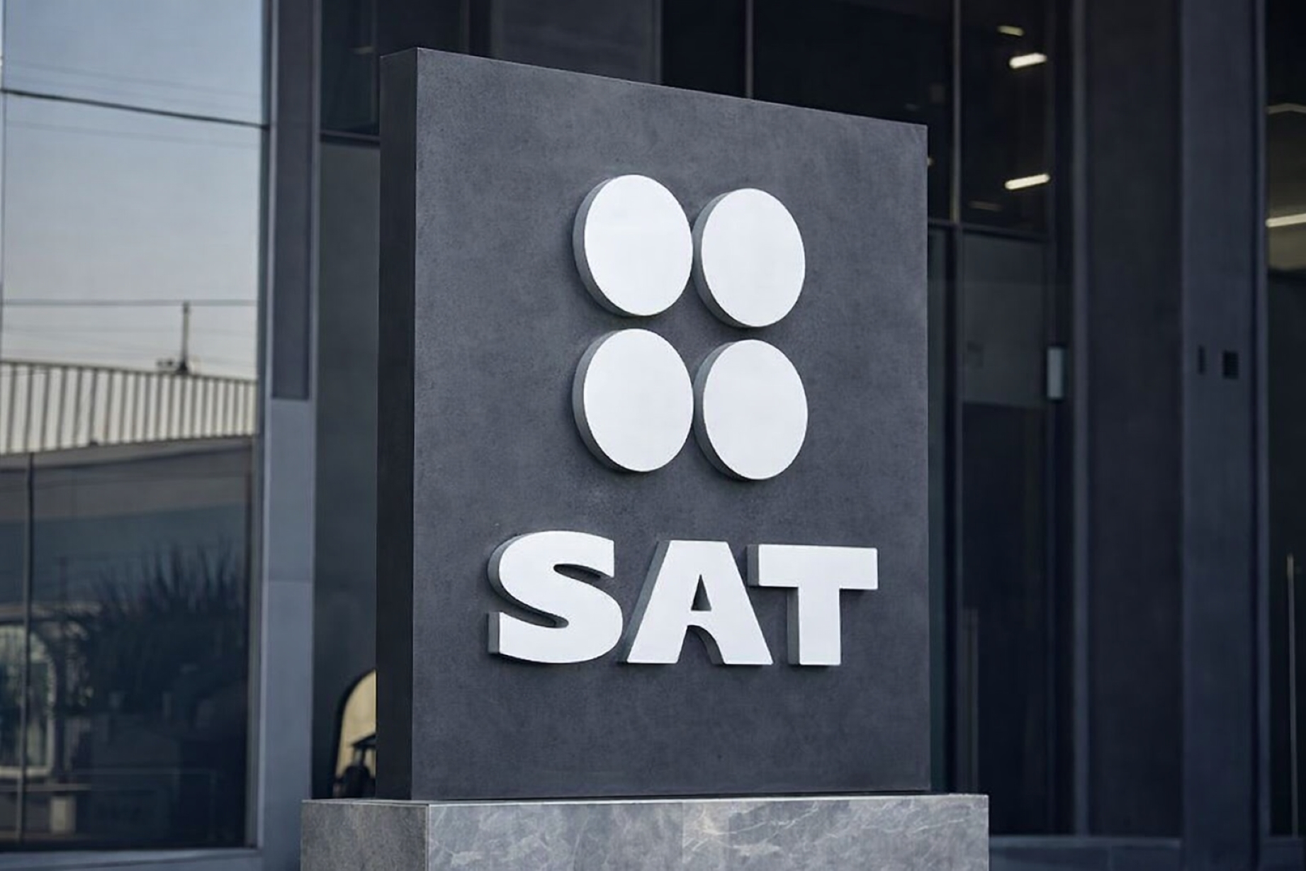Fachada del SAT con señalización oficial del Buzón Tributario